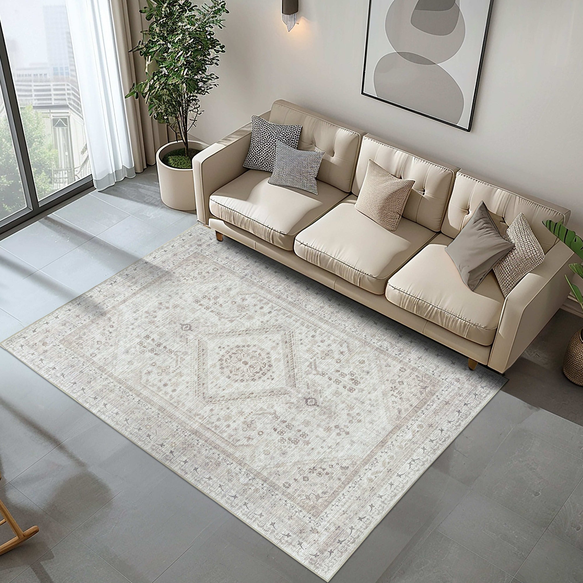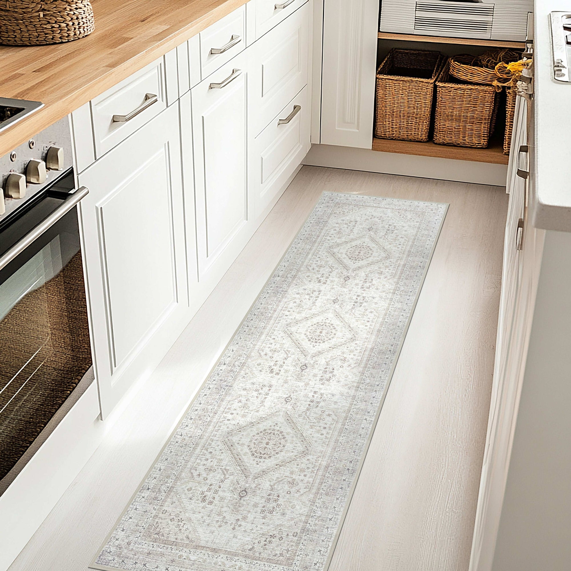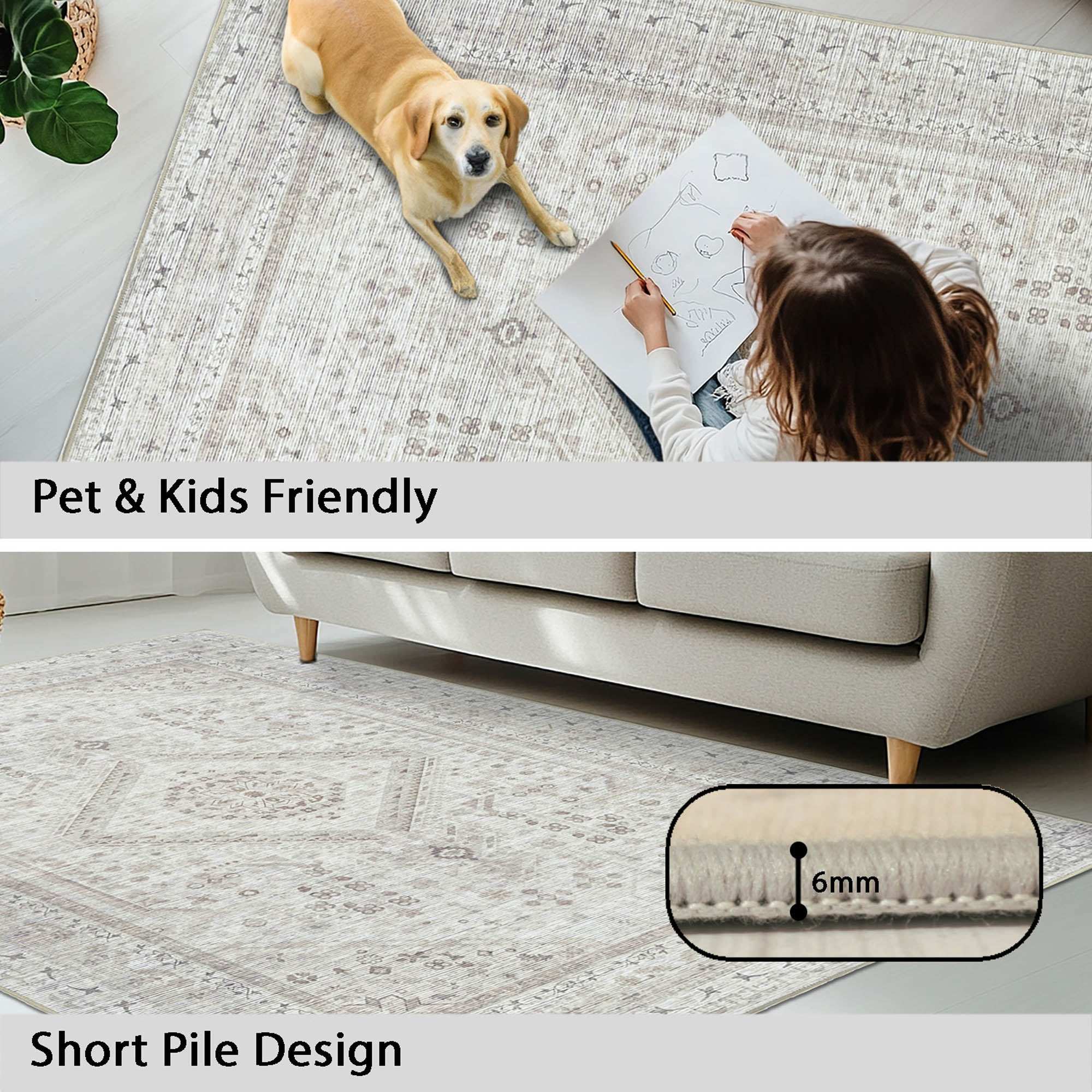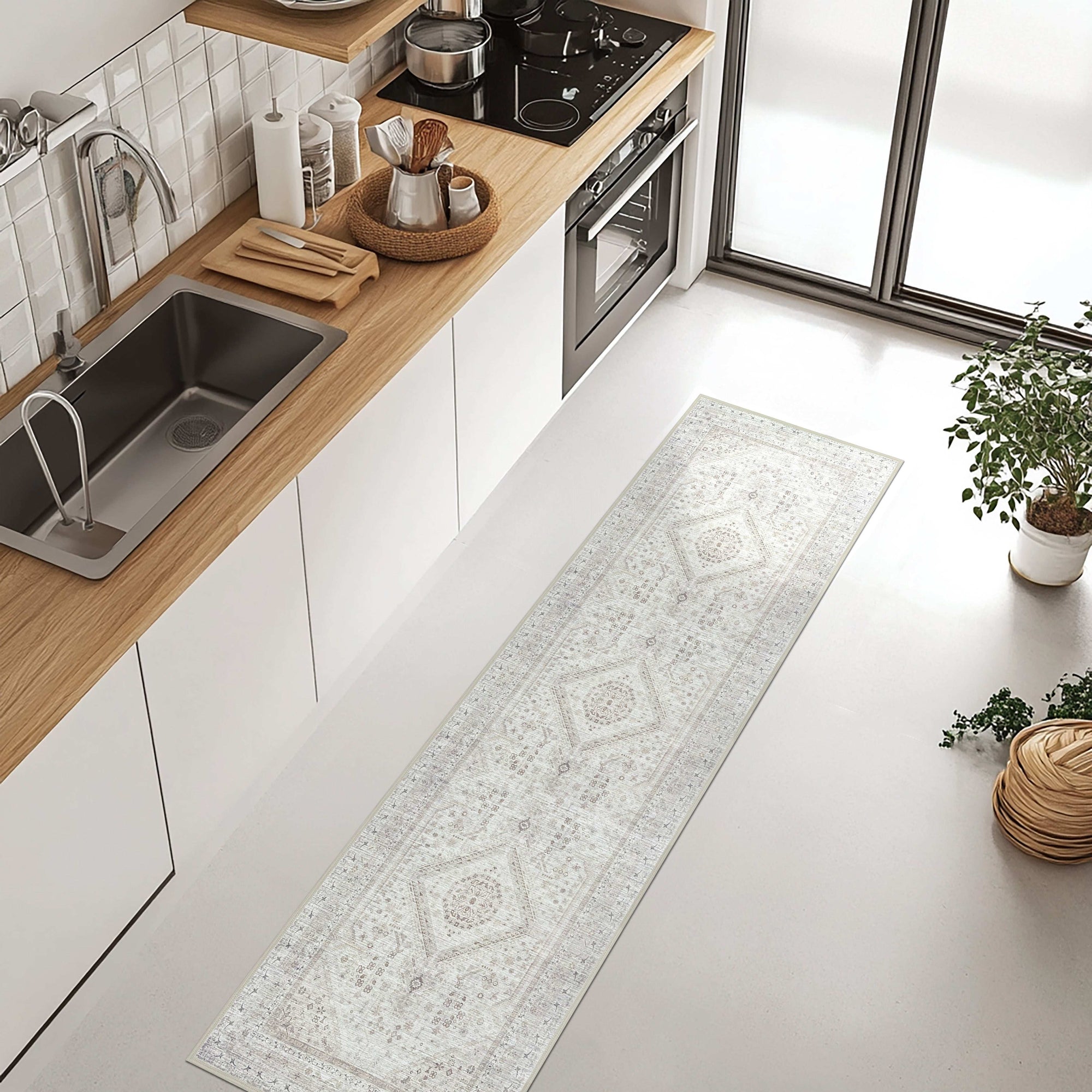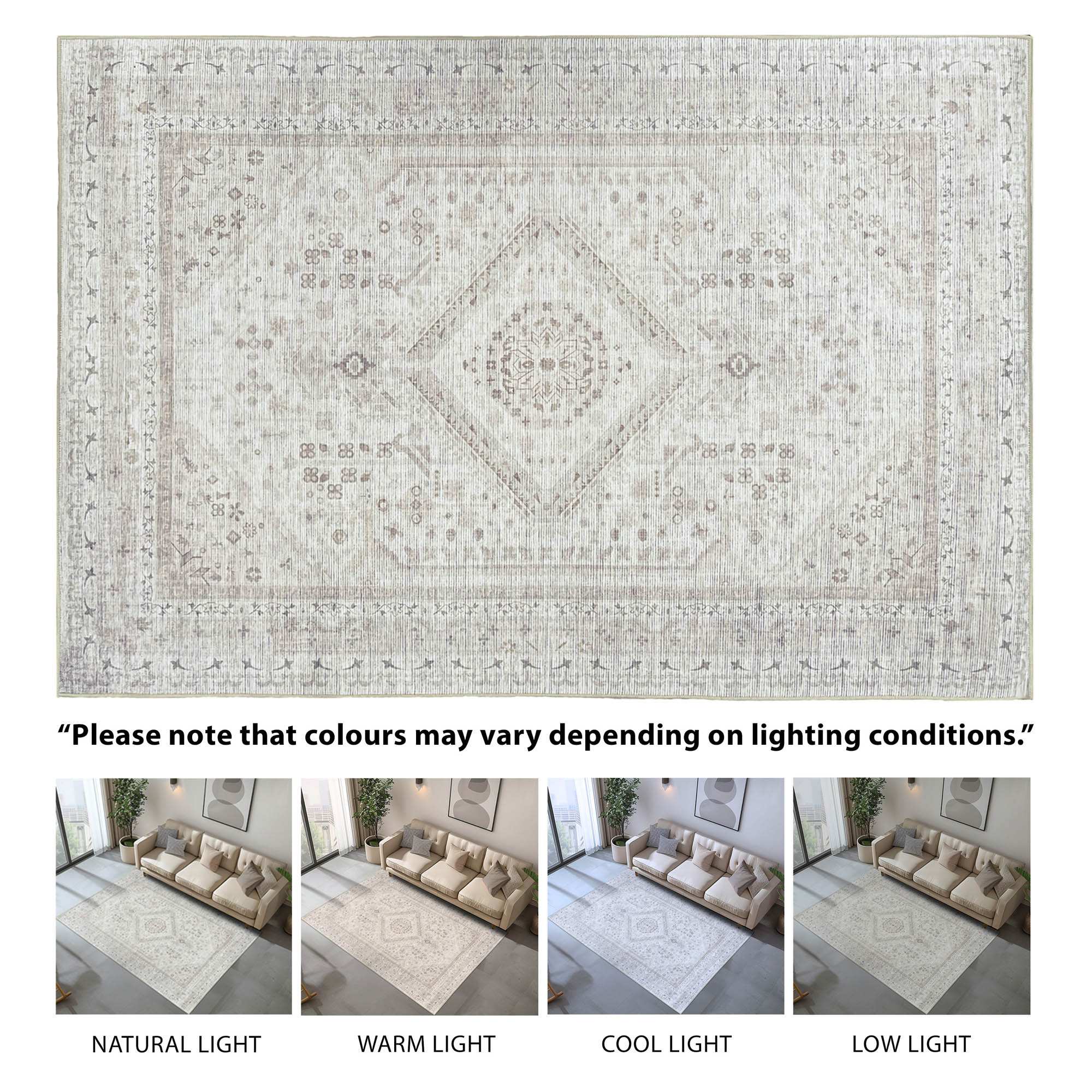 Vernal Senglea Beige, Taupe & Cream Machine Washable Rug and Runner - For Living Room, Dining Room, Bedroom, Kitchens, Kids/Nursery Room