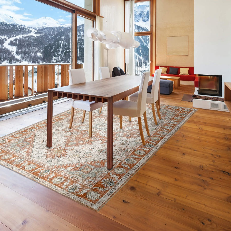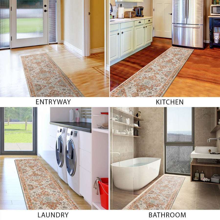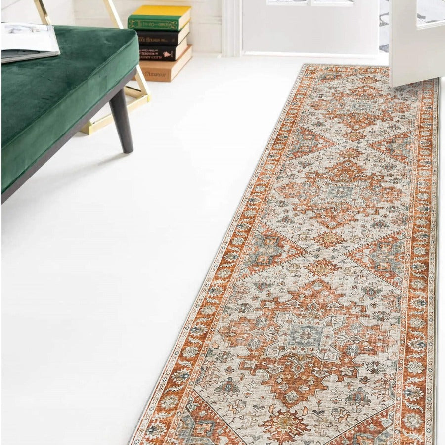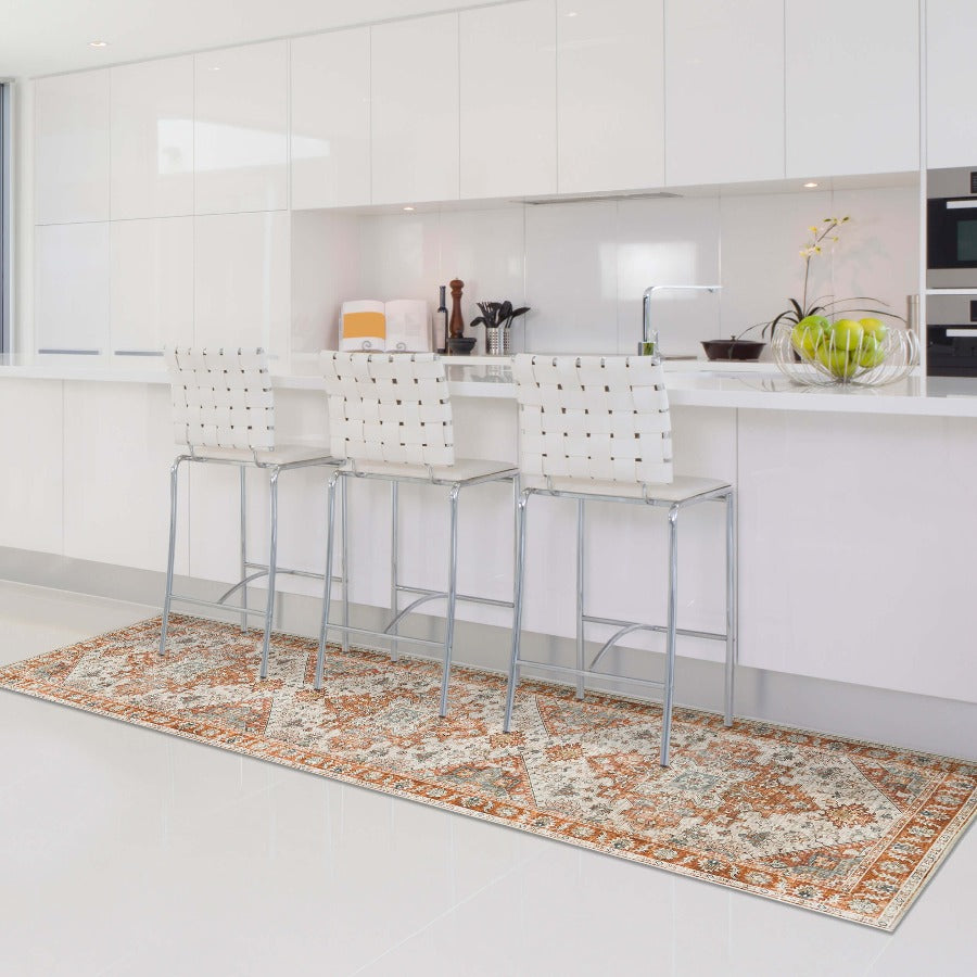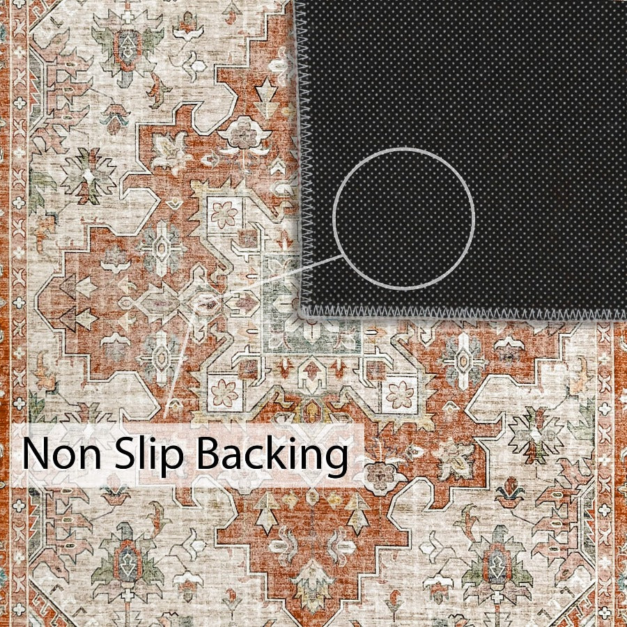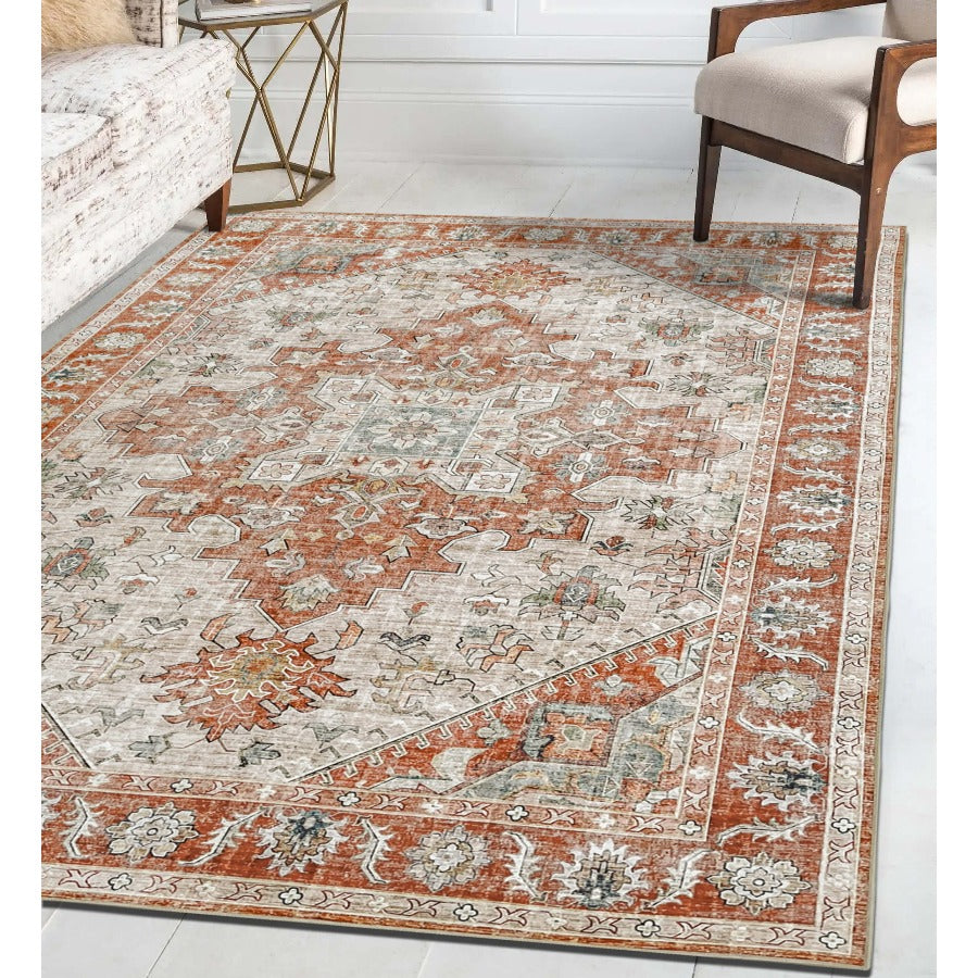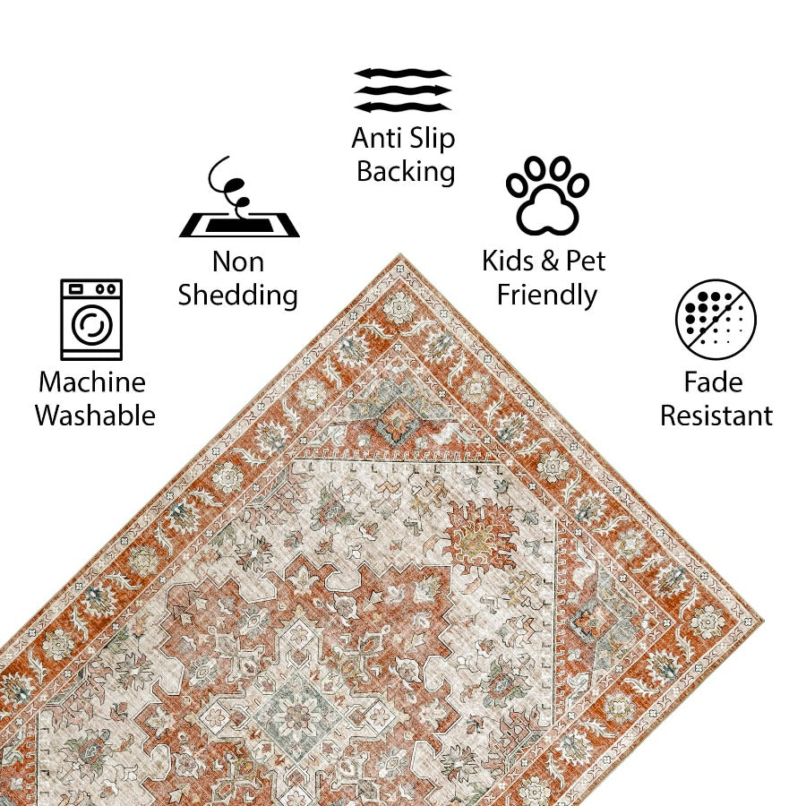 Vernal Milagros Persian Orange/Beige Machine Washable Rug - For Living Room, Dining Room, Bedroom, Kitchens, Kids/Nursery Room